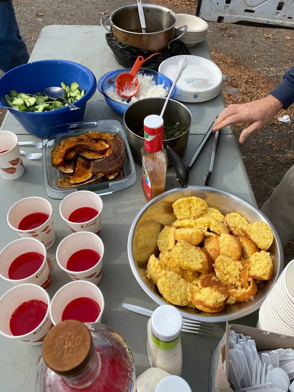 We host monthly meals served out of the back of our trucks. based in pot luck family style meal, we ask for friends to come together to share food and resources and conversation.